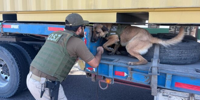 El segundo servicio fue en la comuna de Huara, en conjunto con distintas instituciones como Seremi de Transportes, Servicio de Impuestos Internos, Servicio Agrícola Ganadero y Aduanas, deteniendo a dos personas por contrabando de especies agrícolas y una por infracción a la ley de Tránsito.