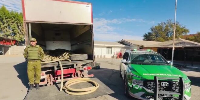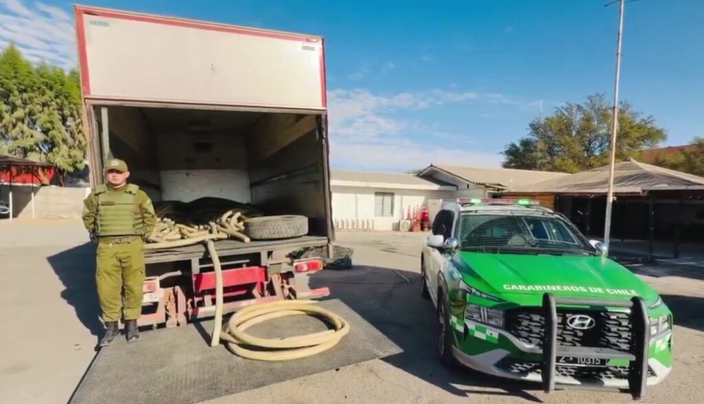 Transportando al menos dos toneladas de cables conectores al interior de la carga de un camión fueron sorprendidos dos hombres durante un servicio desplegado por Carabineros de la 2da Comisaría de Pozo Almonte en la ruta 5 norte.