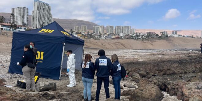 Hasta el sector de Primeras Piedras, en la zona costera sur de Iquique, se trasladó el Equipo de Crimen Organizado y Homicidios (ECOH) de la Fiscalía Regional de Tarapacá, tras el hallazgo del cuerpo de una mujer en los roqueríos del lugar.