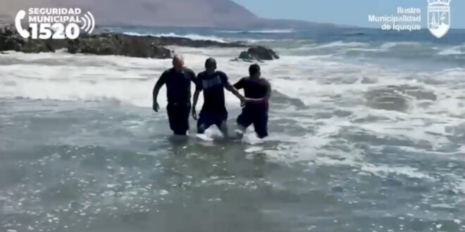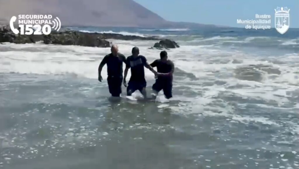 Con el apoyo de las cámaras de seguridad de la Municipalidad de Iquique, personal de la 4ta comisaría Cavancha logró ubicar al imputado en la rotonda de Av. Ramón Pérez Opazo, desde donde se inició una persecución a pie por el sector costero. Durante la huida, el imputado se arrojó al mar con la intención de evitar su detención y lanzó al agua los teléfonos sustraídos. Ante esta situación, personal de Carabineros procedió a rescatarlo del oleaje, para luego detenerlo e incautar el cuchillo utilizado para intimidar a las víctimas.